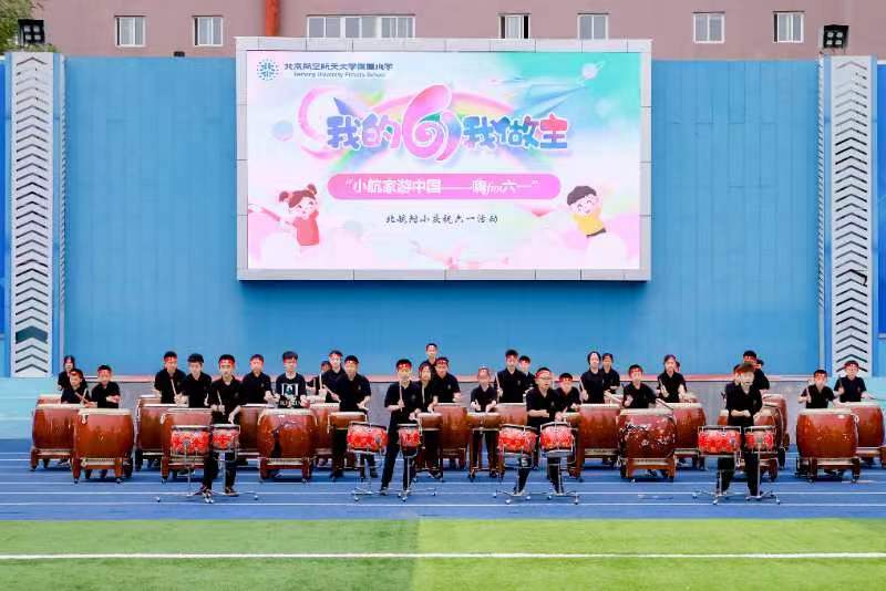 随着北航附小击鼓社打击乐重奏《太鼓仪式》和北航大学团委送上的打击乐重奏《牛斗虎》,活动拉开了序幕,彻底点燃了现场的热情。北航附小“小航星”舞蹈社团为大家带来精彩的舞蹈表演《灵动拉丁》,孩子们用动感的舞步展现了自己的活力和风采。随后的年级歌曲大联唱更是嗨翻全场,不同的年级,不同的歌曲,不同的动作,相同的是那溢出的欢乐和满场的唱和。最后全校合唱一曲《龙的传人》,为祖国献上最美的赞歌。